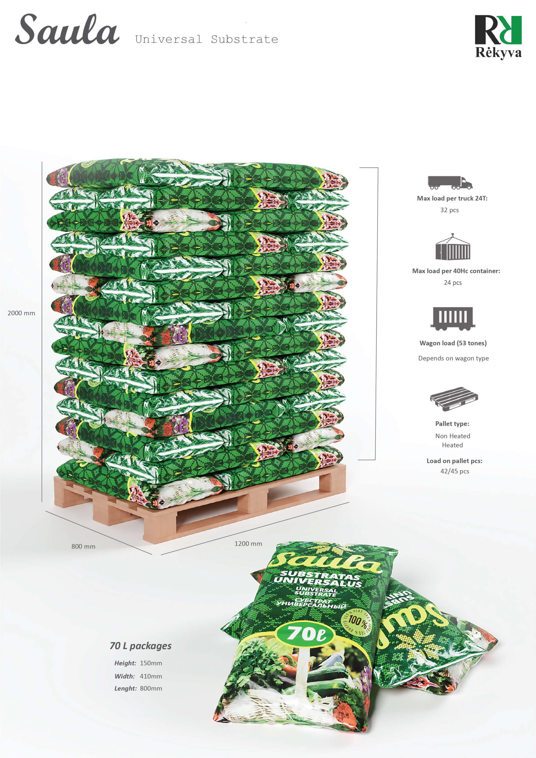 „SAULA“ universalus substratas – tai neutralizuotų durpių pagrindu paruoštas produktas, kuriame yra visos augalo augimui reikalingos medžiagos. Universalus substratas skirtas naudoti daržininkystėje, gėlininkystėje, miškininkystėje bei aplinkai apželdinti, gruntui pagerinti. Pagamintas pagal specialią technologiją, kuri užtikrina optimalų augalo maitinimąsi ir šaknų vystymąsi. Trąšos ir mikroelementai parinkti taip, kad augalai juos lengvai įsisavintų. Substrate augalai gerai auga, todėl sulaukiama didesnio derliaus.